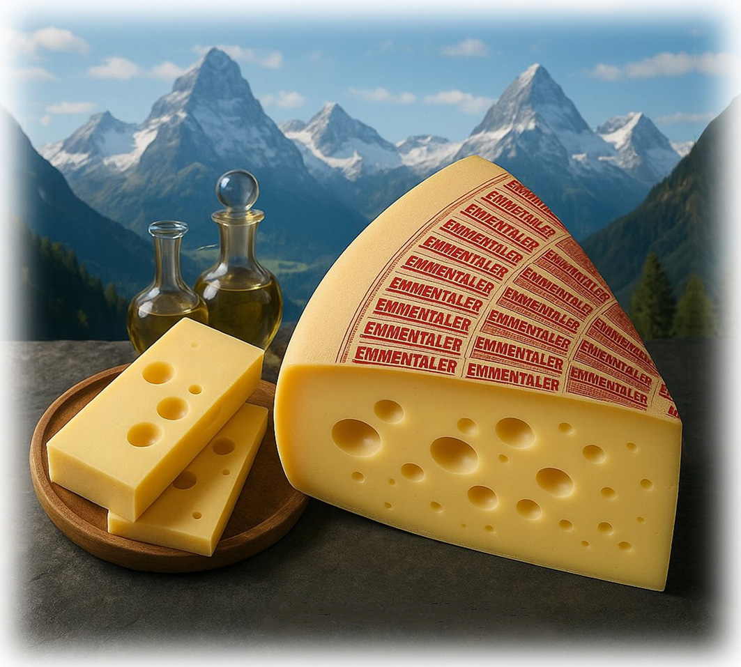 Conocido simplemente como queso «suizo», el Emmental tiene muchos imitadores. El queso original procedía de las tiernas praderas del río Emme, cerca de Berna. Los granjeros de la región lo elaboran desde el año 1293. En aquella época, el queso se elaboraba en los Alpes, donde el ganado solía pasar el verano. Actualmente se elabora también en las tierras bajas de los alrededores.